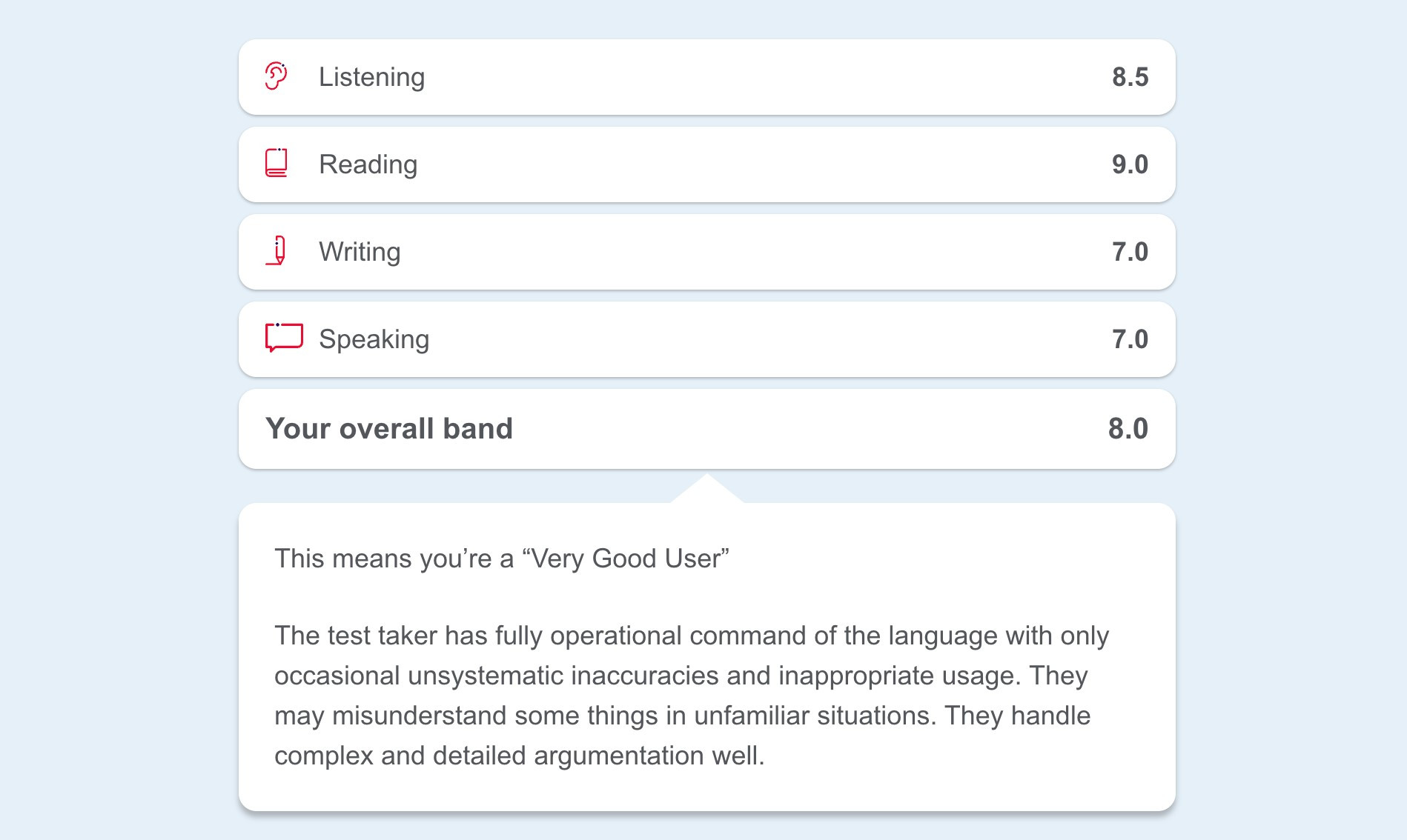 Hàng năm, có trên 2 triệu thí sinh thi IELTS với mục đích du học, định cư hay xin việc làm. IELTS được hơn 11.000 cơ sở đào tạo và tổ chức tại 135 quốc gia công nhận như Anh, Úc, Mỹ, Canada, New Zealand,...